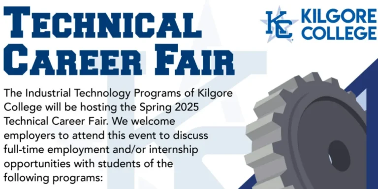 The Industrial Technology programs of Kilgore College will host the Spring 2026 Technical Career Fair. We welcome employers to attend this event to discuss full-time employment and/or internship opportunities with students.
